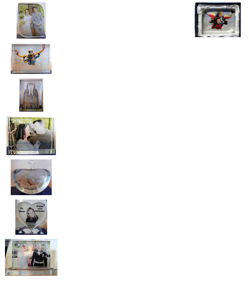 We only use high quality clear crystal with highly polished bevelled edges. We can use any style of photograph with these crystals and place any personalising you require. We can even provide you with a ‘proof’ image for your approval.